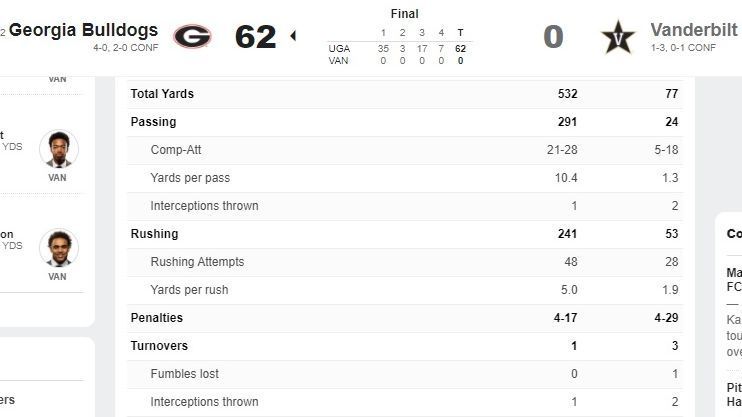 How bad was it? Georgia had 62 points. Vanderbilt had 77 total yards.